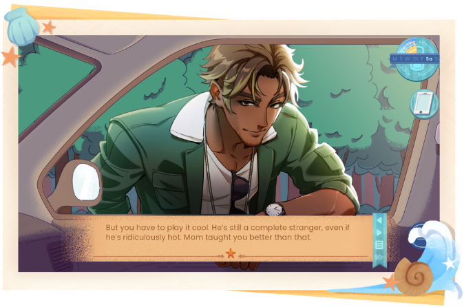As a nice sheriff escorts you to a place to stay, you end up in the quaint town of Brine Bay— your temporary refuge of two weeks, as you find yourself entangled with seven interesting men. All with their own knots to untie. Oh well, since it's still a vacation, might as well make the most of it. You never know just what this town has in store for you!