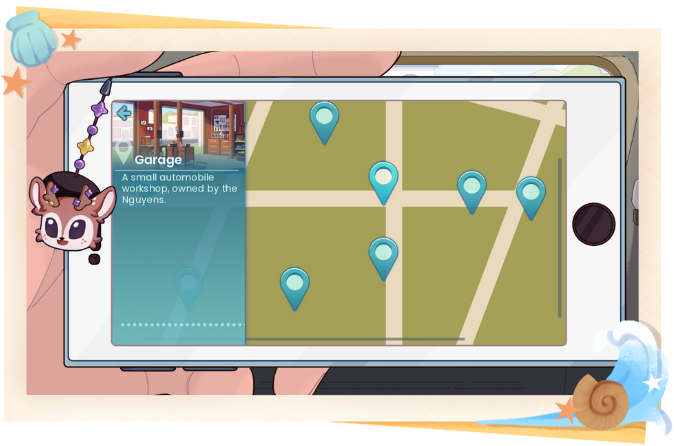 - An Interactable Exploration Map that you can use to travel around Brine Bay.