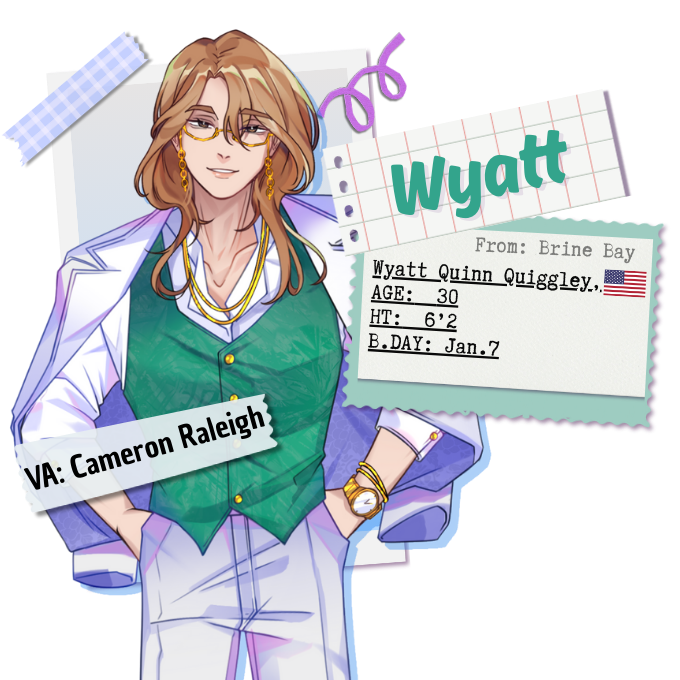 Perhaps boardroom meetings and quarterly earnings reports wouldn't be the first things you'd think of upon laying eyes on his effortless red-carpet demeanor, but as CEO and founder of Whycrosoft, Wyatt boasts countless notches to his belt and accolades to his name. Because of this, many perceive him as an almost untouchable existence — including much of the people of Brine Bay.